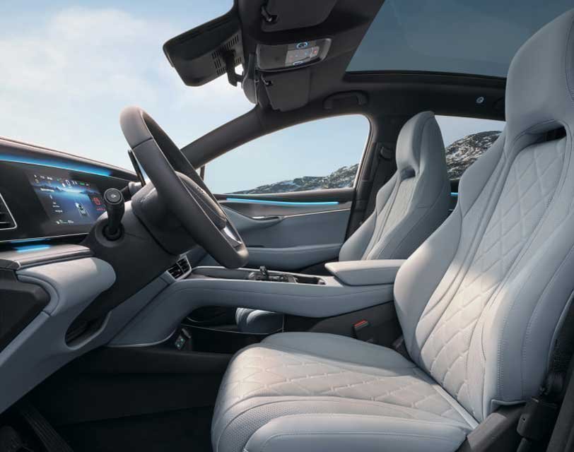 Nikmati sensasi duduk yang lebih eksklusif berkat jok Nappa dengan pola quilted yang dibuat dari lebih dari 80% vegan leather lembut, menghadirkan nuansa mewah sekaligus ramah lingkungan di dalam kabin BYD Sealion 7. Setiap detailnya dirancang untuk memberikan kenyamanan maksimal dan atmosfer interior yang terasa elegan serta berkelas di setiap perjalanan.